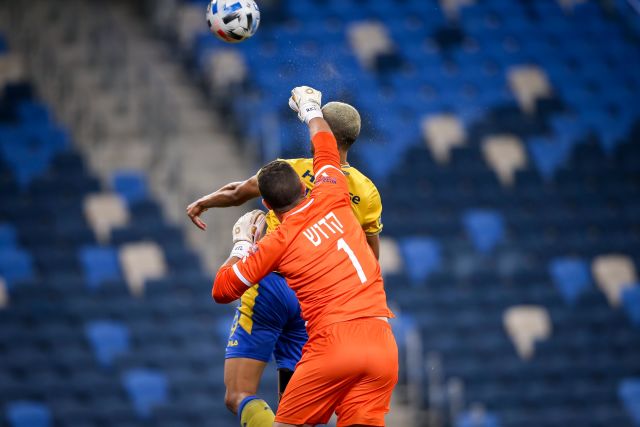 דקה 18 – מאור קנדיל הגביהה מצד ימין, רן קדוש יצא רע מאוד ובלקמן עלה גבוה מאוד ונגח מעל השער.