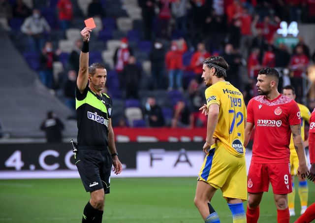 דקה 90+3 – פשיץ' הורחק לאחר בדיקת ה-VAR. החלוץ כמעט הכניע את שטקוס, איאד אבו עביד הציל מהקו ולאחר מכן מערכת ה-VAR החליטה שהיה כאן משחק מסוכן מצד החלוץ.