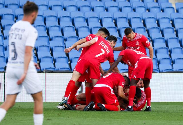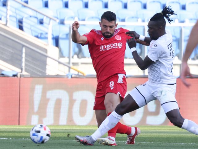 דקה 17 – מצב ראשון מסוכן להפועל תל אביב. איאד אבו עביד נותר ברחבה אחרי כדור קרן, עומרי אלטמן הרים ונגח כדור מסוכן, רובי לבקוביץ' הדף ברגע האחרון.