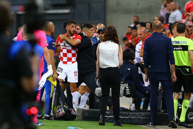 דקה 45: בזמן הירידה לחדרי ההלבשה לאחר שריקת המחצית, החלה תגרה חריגה בין השחקנים. זה החל לאחר שבן חיים התגרה בקבהא והמשיך עם יחזקאל. אנשי הצוות הפרידו בין השחקנים, גרינפלד שלף צהוב לבן חיים.