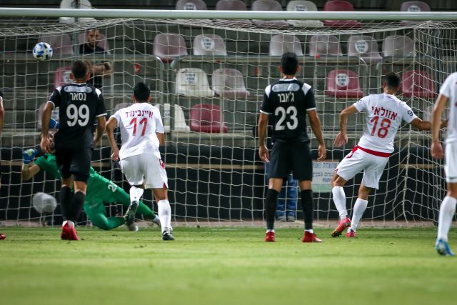 דקה 25, הפועל ת"א חזרה ל-1:1! גנטוס נגע בידו ברחבה, האדומים זכו לכדור עונשין מ-11 מטרים, אותו כבש אזולאי עם בעיטה נפלאה לרשת של קנדיל.