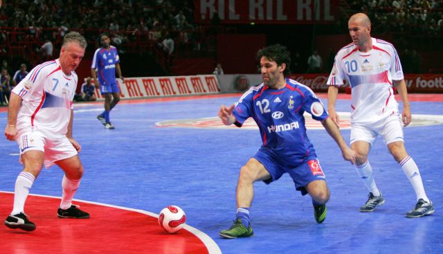 כרמלו מישיש לצד זינדין זידאן ודידייה דשאן במשחק ותיקים | JACQUES DEMARTHON/AFP via Getty Images