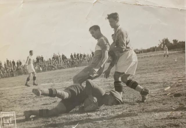 בעונת 1936 זכתה מכבי תל אביב בתואר האליפות הראשון בתולדותיה, כשהחלק ההתקפי שלה כולל את גאול מכליס, פריץ דוננפלד, פרי נויפלד, ג'רי בית הלוי ונתן פנץ. נויפלד הקים כאן את משפחתו ועל המגרש הבקיע בצרורות והיה אימת ההגנות. הוא היה אהוב הקהל ואחד הספורטאים הגדולים בכדורגל של התקופה ההיא. בשל מאורעות מול הערבים ואי השקט בדרכים, רק שש קבוצות השתתפו בליגה של 1936 – מכבי תל אביב, הכוח תל אביב, הפועל תל אביב, הפועל חיפה, מכבי פתח תקווה ונס ציונה. המשחק שהכריע את גורל האליפות היה הדרבי נגד הפועל תל אביב ב-11 בדצמבר במגרש התמרים של הפועל תל אביב. הפועל תל אביב הובילה בפתיחה ביתרון 0:2 משערים של אמנון חרל"פ ויוחנן סוקניק, מכבי צימקה בירידה להפסקה משער של ג'רי בית הלוי.