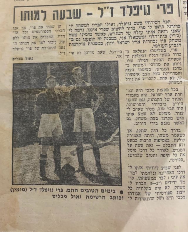 סיפורו של פרי נויפלד, השחקן הזר הראשון בכדורגל הארץ ישראלי, במכבי תל אביב ונבחרת ארץ ישראל, הוא היפה והמרתק ביותר. פרנץ (פרי) נויפלד נולד בשנת 1913 בהונגריה והחל את דרכו בקבוצת אויפשט הגדולה. נויפלד הוזמן לנבחרת הנוער של הונגריה, איתה ערך סדרת משחקים ארוכה ברחבי אירופה. ב-1932 הגיע לבירה בודפשט מאמן אוסטרי כדי לרכוש כדורגלנים עבור קבוצות מהליגה במצרים. נויפלד צד את עינו והוחתם על חוזה למשך שלוש שנים באלכסנדריה. מלבד מענק כספי נאה, שכרו החודשי היה שמונה לירות מצריות, מענקי ניצחונות ודירה בת חמישה חדרים סמוך לטיילת המפורסמת של העיר. נויפלד הפך בעמדת החלוץ המרכזי לאחד השחקנים המפורסמים במצרים. הוצע לו לקבל אזרחות מצרית כדי שיוכל לשחק בנבחרת, אבל הוא הוא דחה את ההצעה. בשנת 1934, במוקדמות אליפות העולם באיטליה, הוגרלה נבחרת ארץ ישראל למפגש כפול נגד נבחרת מצרים. המשחק הראשון נקבע להתקיים בקהיר.