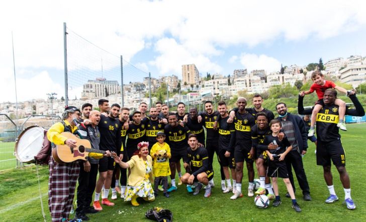 שחקני בית"ר ירושלים משמחים ילד