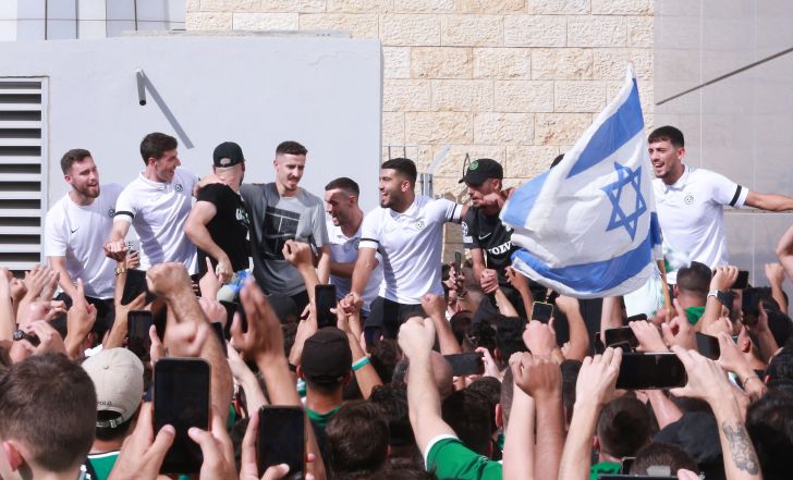 דולב חזיזה וצ'ארון שרי היו הראשונים שיצאו והורמו על כתפי האוהדים. נטע לביא הורם יחד עם ברק בכר, לקח את המגאפון ואמר לאוהדים: "אתם מלווים אותנו לכל מקום בעולם, הקהל הכי מדהים שיש. יאללה ליגת האלופות". מוחמד אבו פאני יצא וזכה לקריאות "תישאר, תישאר" וגם: "הארי קיין על הזין". פרנזי פיירו הצטלם עם האוהדים ולאחר מכן הונף גם הוא על כפיים, בדומה ליתר הגיבורים הירוקים.