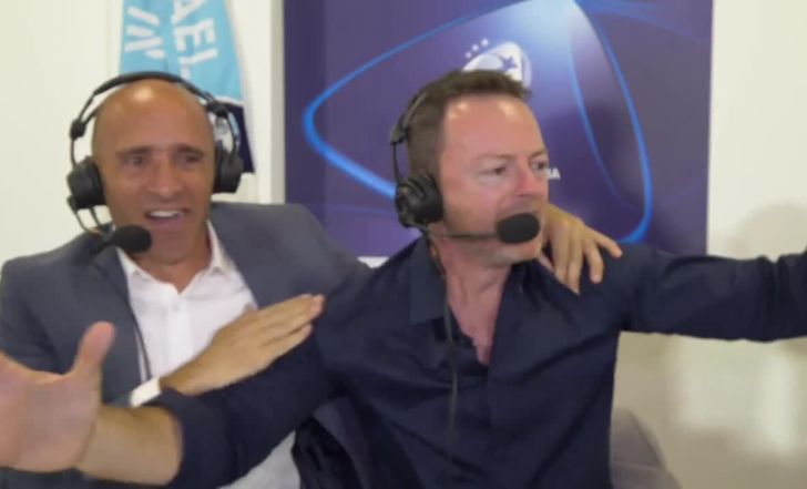 איך אותו רגע היסטורי היה נראה בתא השידור באצטדיון בגאורגיה? צפו בשדר המשחק לירן שכנר ובפרשן אורי אוזן יוצאים מגדרם ברגע שגנדלמן מבקיע, וגם בשניות שאחרי שנשמעה שריקת הסיום.