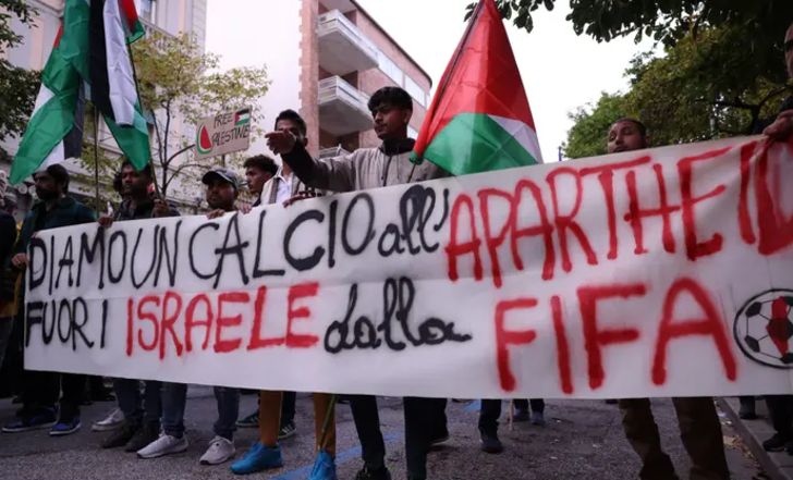 ???? Protesta a favor de Palestina en Udine antes del partido de fútbol de Italia contra Israel