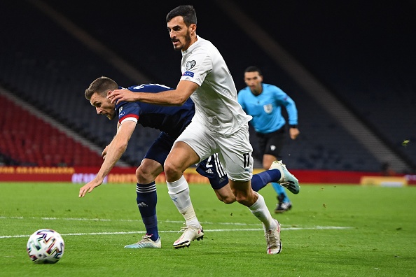 המשחק היה מאוזן לחלוטין, כאמור, ובפתיחה ישראל החזיקה קצת יותר בכדור – אבל שתי הנבחרות התקשו מאוד לייצר מצבי הבקעה. ההתמודדות הייתה מאוד טקטית. היה נראה ששתי הנבחרות חוששות מאוד לטעות. לשני השוערים לא הייתה עבודה קשה בכלל, ובדקה ה-40 הנבחרת שלנו פשוט ניצלה מפיגור. השחקן הכי גבוה על המגרש, סקוט מקטומיניי, היה חופשי לחלוטין ברחבה של אופיר מרציאנו אחרי כיסוי גרוע לקרן שהגביה אנדרו רוברטסון. קשר מנצ'סטר יונייטד נגח מקרוב, אך רק במזל הכדור שלו לא הלך אל המסגרת והוחמץ בסנטימטרים בודדים.