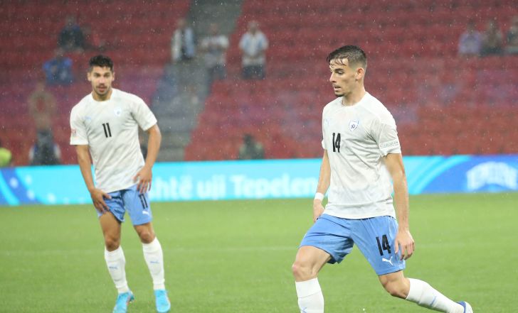 ארמנדו ברויה שחקן נבחרת אלבניה מול דורון ליידנר שחקן נבחרת ישראל
