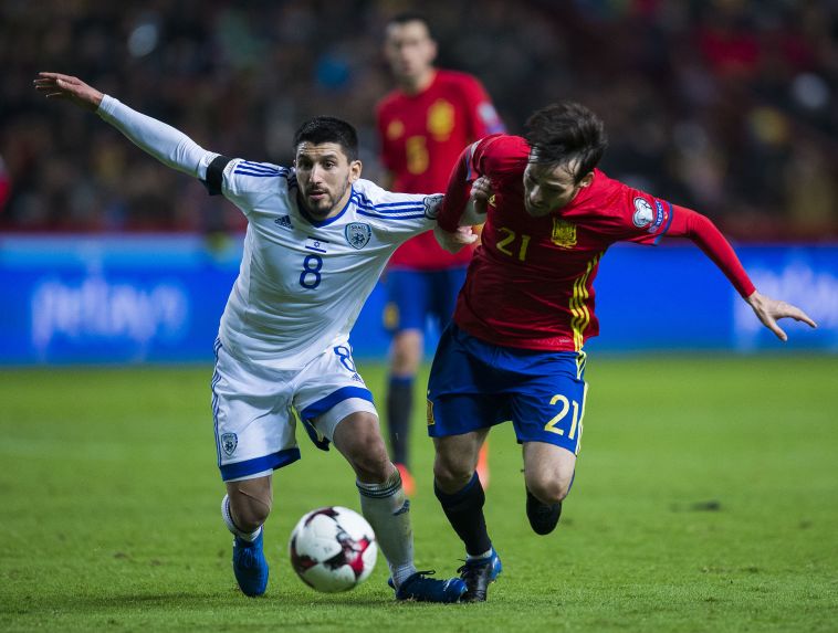 אלמוג כהן מול דויד סילבה, במשחק מול ספרד. "לפעמים אנחנו מזלזלים" (gettyimages)