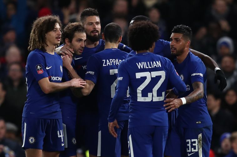 שחקני צ'לסי חוגגים. מוריניו פוטר ממנה וקונטה בא במקומו (gettyimages)