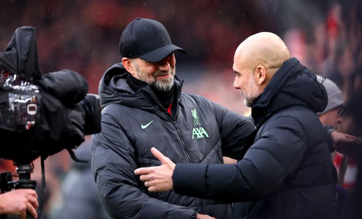 פפ גווארדיולה מאמן מנצ'סטר סיטי לצד יורגן קלופ מאמן ליברפול | אימג'בנק GettyImages