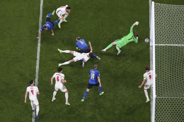 פיל פודן היה פצוע הפעם, אבל ג'ק גריליש נכנס רק בדקה ה-99 בהארכה, בעוד ג'יידון סאנצ'ו ומרקוס רשפורד שולבו רק כדי לבעוט פנדלים. סאות'גייט ביצע שינוי טקטי נכון בדקה ה-71 כאשר ויתר על בלם שלישי בהיעדרו של אימובילה ושלח למגרש את בוקאיו סאקה הפעלתן, אבל זה לא היה מספיק כדי לשנות את המומנטום. הוא היה של האיטלקים עד לשלהי ההארכה, אז ביצעו האנגלים ניסיון נואש ולא אפקטיבי להימנע בכל זאת מפנדלים. זה היה מאוחר מדי והבלמים המזדקנים של מנצ'יני לא עמדו בפני משימות קשות במיוחד. הן קייליני והן בונוצ'י סחבו כרטיסים צהובים – הקפטן קיבל את שלו בגין עבירה בוטה עד כדי גיחוך על סאקה – אך הם חייכו עד הסוף.