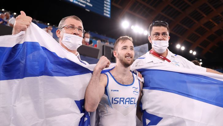 אחת התמונות המרגשות ביותר בהיסטוריה של הספורט הישראלי. באמצע ארטיום דולגופיאט שעלה לארץ מאוקראינה. מימינו המאמן סרגיי וייסבורג, עולה ותיק שגידל את דולגופיאט ואלכס שטילוב. משמאלו הפיזיותרפיסט אדם באדיר, ערבי-ישראלי שכבר שנים הוא חלק בלתי נפרד מהצוות המופלא הזה והוא זה שאחראי על הטיפול בגופו של דולגופיאט, שידע פציעות מאוד לא נעימות. כולם מחזיקים בכוח את הדגל, באדיר הוא הראשון שמעכל את גודל ההישג והיחיד שבוכה אפילו יותר מהמתעמל הספרדי זפאטה.כולם השאירו מאחור את הקורונה, את המתיחות הנוראית שעברנו כאן במבצע "שומר החומות", את הדעות הקדומות, הדת והעדות – מביטים אל המצלמה ולא מאמינים שהם אלו שנכנסו לספרי ההיסטוריה של מדינת ישראל, לא רק של הספורט הישראלי.