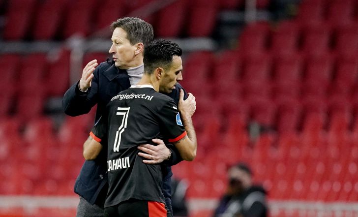 אריק טן האח מאמן אייאקס עם רוג'ר שמידט מאמן פ.ס.וו איינדהובן