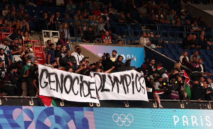 כמו במחזור הפתיחה ביום רביעי, גם הערב (שבת) משחקה של נבחרת ישראל בטורניר הכדורגל האולימפי מהווה הזדמנות עבור מתנגדי ישראל בצרפת להביע את מחאתם. כ-30 בני אדם נכנסו ליציע בפארק דה פראנס עם דגלי פלסטין וגם צעקו "פלסטין, פלסטין" וקריאות נגד ישראל בזמן השמעת ההמנון הלאומי "התקווה" לפני שריקת הפתיחה למפגש עם פרגוואי. במהשך הונף גם שלט גדול ועליו הכיתוב Genocide Olympics ("אולימפיאדת רצח עם").