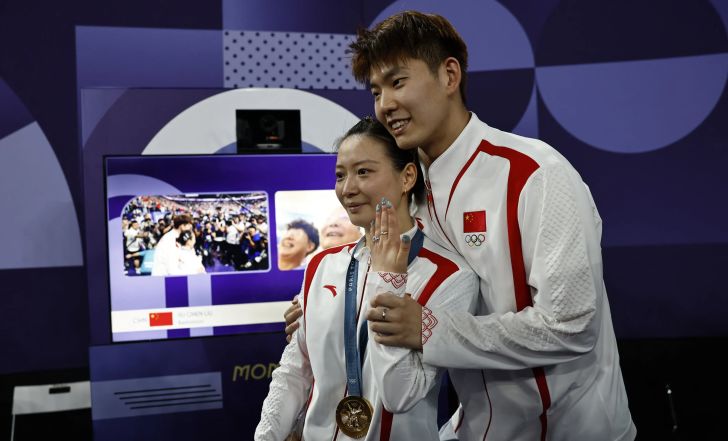 הואנג יה צ'יונג חוותה בפריז את היום המאושר בחייה. שחקנית הבדמינטון הסינית זכתה במדליית זהב בזוגות המעורבים יחד עם ז'נג סיוויי אחרי ניצחון על צמד מדרום קוריאה, ובתום טקס הענקת המדליות הערב (שישי) ראתה את בן זוגה ליו יוצ'ן ממתין לה עם פרחים.