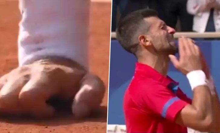 Novak Djokovic shaking as he wins the Olympic gold medal.