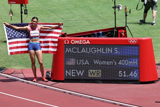 השיאים באולימפיאדת טוקיו נשברים בזה אחר זה. אם אחרי הריצה המדהימה של קרסטן ורהולם חשבתם שראיתם הכול, מה תגידו על סידני מקלאפלין, ששברה את שיא העולם ב-400 מטר משוכות לנשים בלא פחות מ-44 מאיות, כשעצרה את השעון על 51.46 ובכך ניפצה את שיא העולם שהיא בעצמה קבעה לפני מספר שבועות במבחנים האמריקאים לאולימפיאדה? מקלאפלין, בסך הכול בת 21 (האלופה הצעירה אי פעם בריצת ה-400 משוכות), זכתה בזהב, כשבדומה למרוץ הגברים, גם אצל הנשים שתי הראשונות רצו מהר יותר משיא העולם, כשגם דלילה מוחמד ירדה מ-52 שניות כשקבעה 51.58 והיא זכתה במדליית כסף. לפמקה בול סיימה שלישית, גם כן עם זמן מעולה, כשקבעה 52.03 שניות.