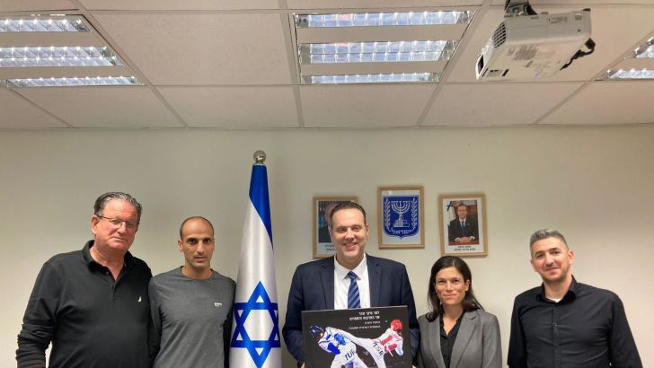 שר התרבות והספורט מיקי זוהר נפגש עם נציגי ענף הטאקוונדו היו"ר יהודה מעיין, המנכ"לית נועה שמידע והמאמן הלאומי יחיעם שרעבי.