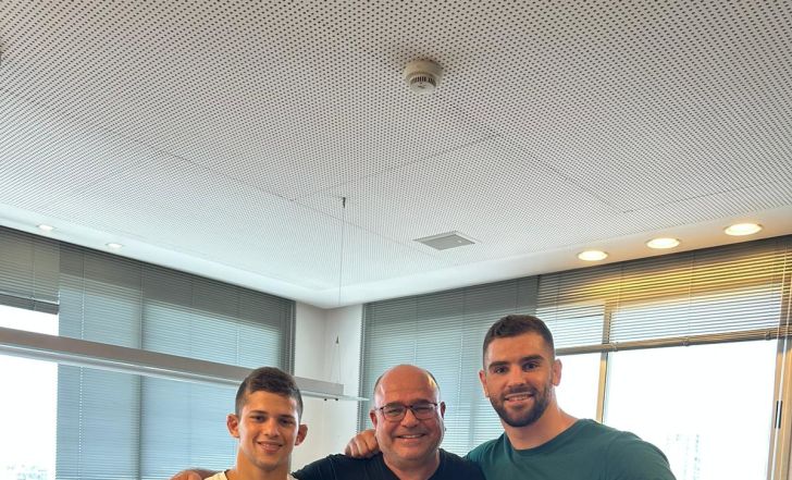 הג'ודוקא בן ה-19 חתם על חוזה אימוץ עם חברת היזמות והבנייה צרפתי צבי ובניו, ובכך חבר לשותפו לנבחרת ולמאיה גושן