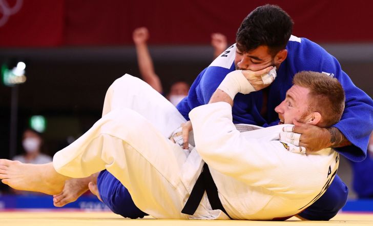 יבגני שמצילין בן ה-22 כבר רשם את ההישג הטוב בקריירת הבוגרים שלו וכמעט השיג מדליה, אבל פגש בקרב על הארד את הגאורגי גוראם טושישווילי, מדליסט הכסף מטוקיו ואלוף העולם לשעבר, שגבר עליו באיפון מהיר תוך פחות מדקה. שמצילין ניצח לפני כן בווזארי יריבים מאיטליה והולנד ואז הפסיד ברבע הגמר לאנדי גראנדה הקובני. בבית הניחומים ביצע איפון על אזמט צ'וצ'אייב המייצג את בחריין, אך כאמור נעצר בקרב על המדליה.