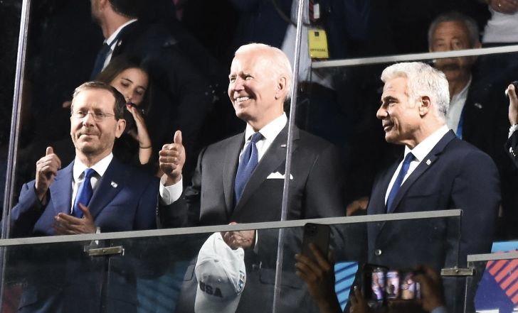נשיא ארצות הברית הגיע לקראת 20:30 והספיק לצפות במשלחת של ארצות הברית, הגדולה ביותר במכביה מלבד זו הישראלית, נכנסת. כאמור, גם ראש הממשלה יאיר לפיד ונשיא המדינה יצחק בוז'י הרצוג נכחו, כמו גם שר הביטחון בני גנץ.