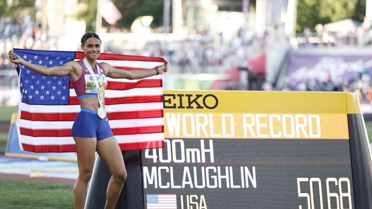 אליפות העולם באתלטיקה סיפקה הבוקר (שבת) שיא עולם ראשון, בריצת 400 מטר משוכות בנשים. סידני מקלפלין מארצות הברית הפכה לאצנית הראשונה בהיסטוריה שיורדת מ-51 שניות, כשעצרה את השעון על 50.68 וניפצה בלא פחות מ-73 מאיות את השיא בו החזיקה בעצמה, בדרך לזכייה במדליית הזהב.