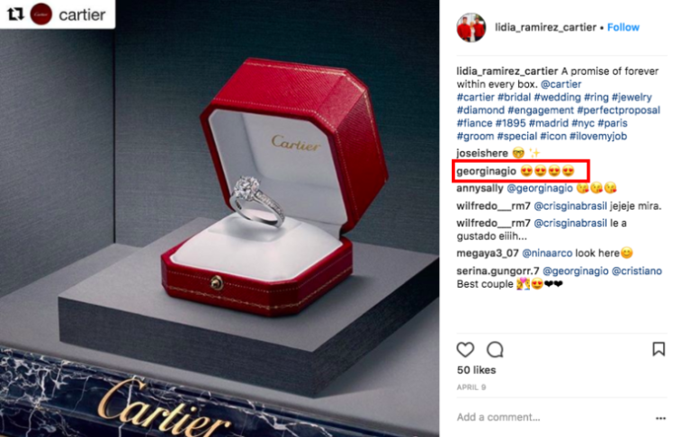 מה שמעלה את החשדות לכך שמדובר בטבעת אירוסים, היא רודריגס שמרוב שלא הצליחה לצנן את התלהבותה, הגיבה על התמונה של הטבעת שהעלו בחשבון האינסטגרם של קרטייר. לא רק זה, הרשת היוקרתית ממתגת את הטבעת כטבעת אירוסים – ולא סתם הדוגמנית הספרדייה הגיבה עם שלל אימוג'ים של לבבות. הלב שלה מלא באהבה!