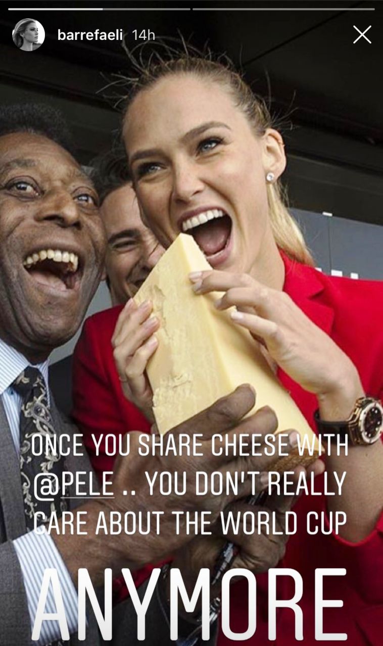 הדוגמנית שנמצאת בימים אלו בקליפורניה ומחזיקה בחשבון אינסטגרם אחריו עוקבים 2.6 מיליון, שיתפה בסטורי שלה את התמונה עם אגדת הכדורגל וכתבה: "אחרי שאת חולקת גבינה עם פלה, לא ממש אכפת לך ממשחקי גביע העולם יותר". מדוייק מאד מצידה של רפאלי, שהצטלמה עם הכדורגלן היחיד בעולם שזכה בשלושה גביעי עולם (1958, 1962 ו-1970). כך או כך, ברזיל תמשיך במירוץ להשגת הגביע העולמי ומי יודע – אולי רפאלי תמשיך להרים לנבחרת של פלה וניימאר…