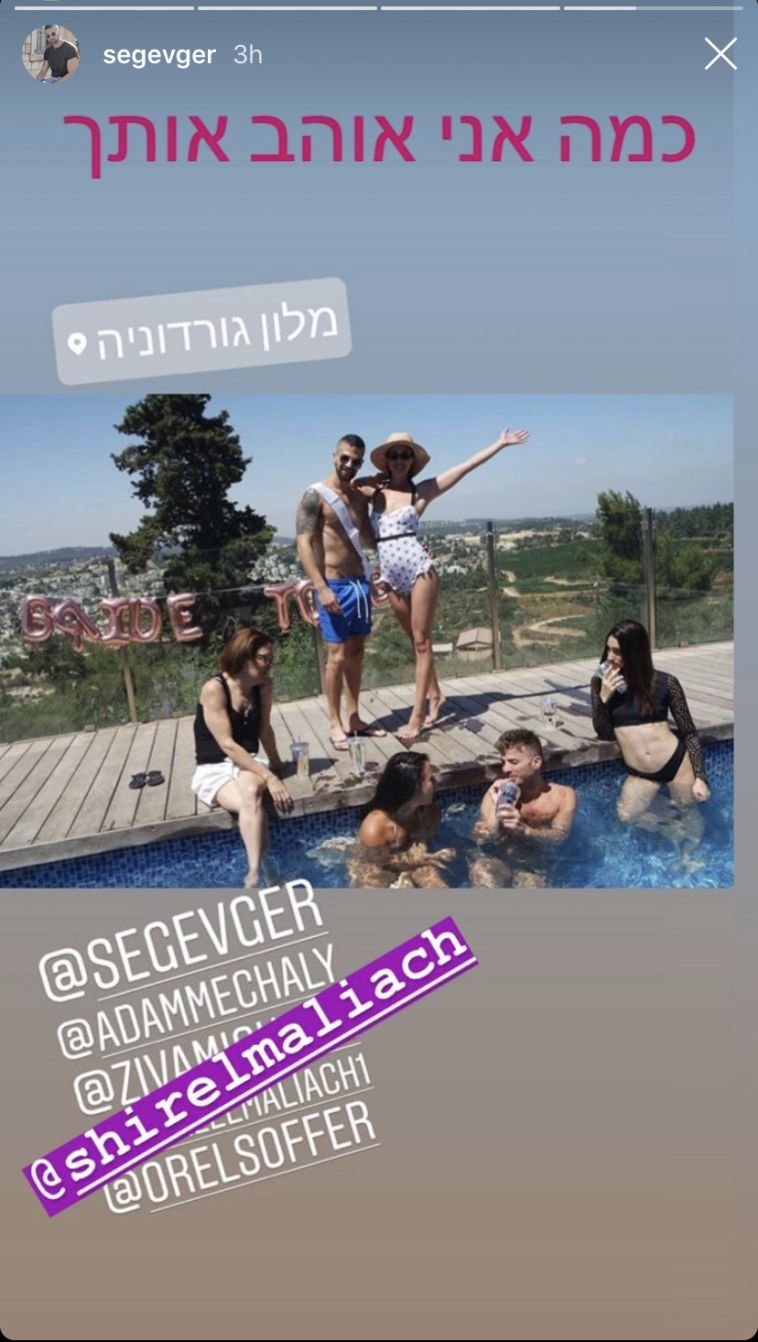 לאחר מכן המשיכה החבורה שכללה את: אחותה הצעירה והרווקה של שיר, יובל אלמליח שדומה לה שתי טיפות מים, הסוכנות שלה זיווה מיכאל ואוראל סופר, ושני החברים הצמודים שלה, אדם מ'צלי ושגב גרשון למלון גורדוניה המפנק ליד נווה אילן שם בילו את הלילה. בבוקר, עלתה החבורה בראשותה של הכלה העתידית על בגדי ים והמשיכה לחגוג ולשמוח. מוכרחים לציין שהדוגמנית נראית הכי מאושרת שראינו אותה אבר!!