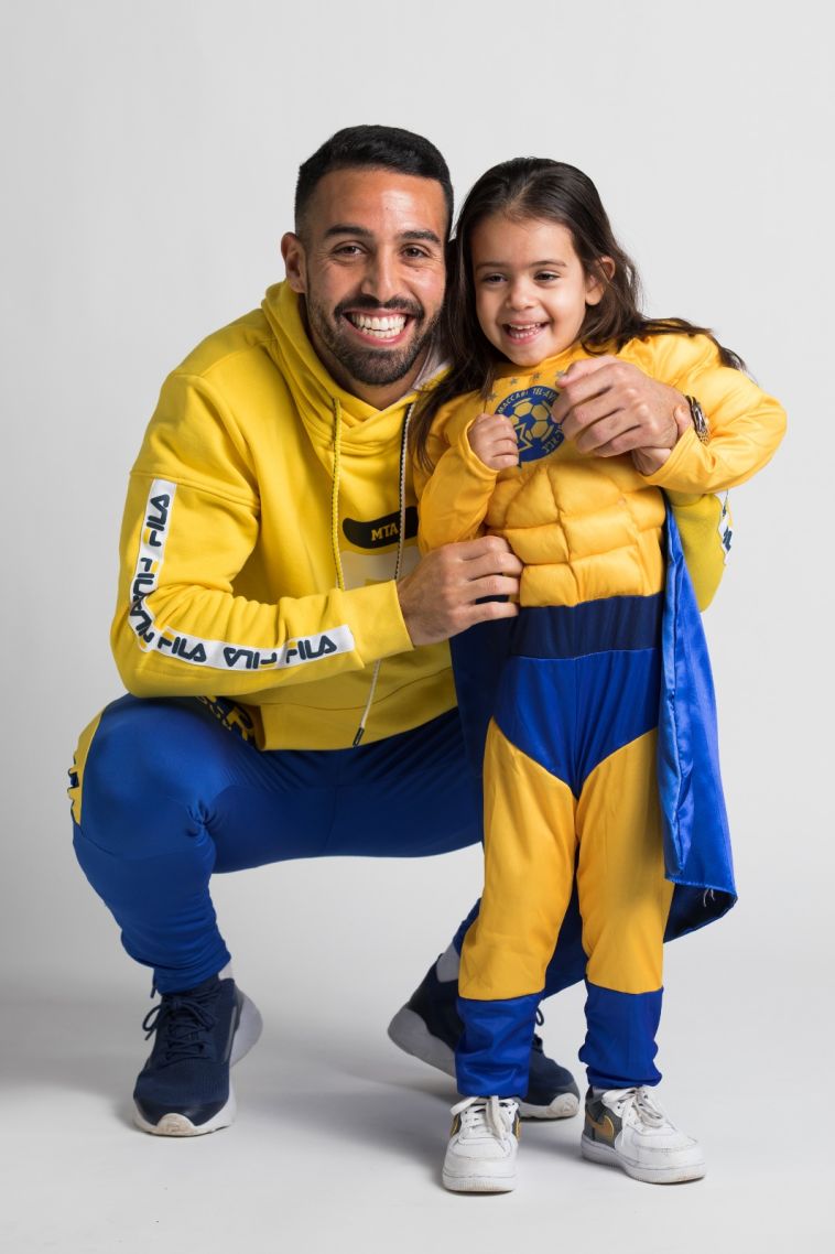 כעת, כל ילד או ילדה יכולים להפוך בעצמם לגיבורי על בצבעי המועדון. לצורך הצילומים עבור התחפושות המדליקות, במועדון גייסו נציגים של דור ההמשך. ירין ריקן, בנו של אבי ריקן, אדל גולסה, בתו של אייל גולסה, ומריאנה ג'רלדש בתו של אנדראה ג'ראלדש הגיעו לסט הצילומים ודגמנו את התחפושת במתיקות שיא. אחרי שהם רגילים לראות את האבות מלהטטים על כר הדשא, כעת הגיע תורם של הילדים שהפכו מיד לגיבורי העל האמיתיים. התחפושות זמינות בחנויות של מכבי תל אביב ובחנות האונליין.