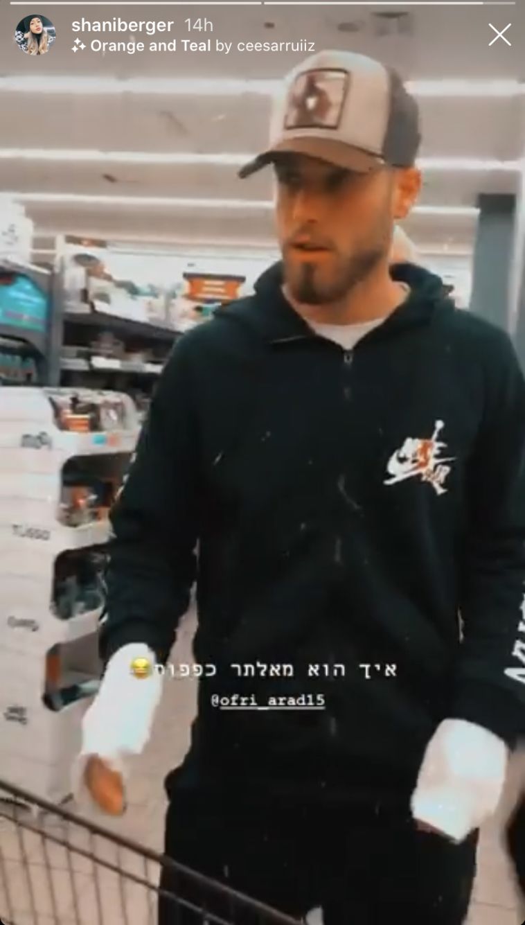 עופרי ארד מאלתר כפפות בסופר עם שני ברגר שלו (צילום: אינסטגרם)
