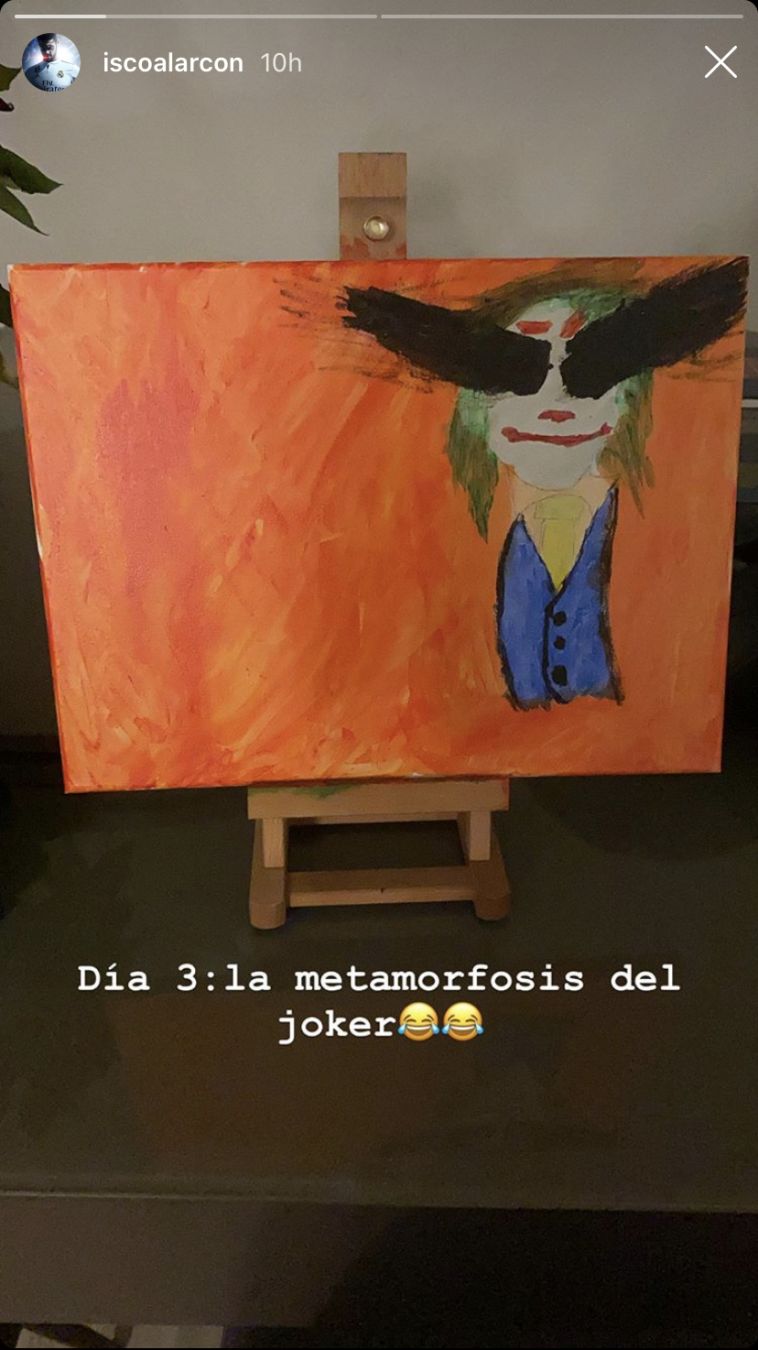 אחרי שסיפרנו לכם על 'חדשות הבידוד' מפיה של שרה סלומו, אשתו של איסקו, קשרה ההתקפי של ריאל מדריד שנמצא ביחד עם משפחתו בבידוד, כעת הוא חושף בפני מיליוני העוקבים שלו איך הוא מנצל את הזמן. כוכב הכדורגל החליט להיות יצירתי, והחל לצייר. מה דעתכם על הג'וקר שצייר?