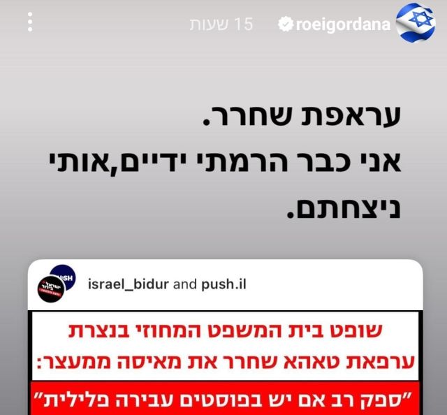 מי שממש לא אהב את ההחלטה הזו הוא שחקן מכבי חיפה ונבחרת ישראל, דולב חזיזה, שכתב בכעס בעמוד האינסטגרם שלו: "מתבייש בכל מי שקשור לזה. המדינה שלנו הכי חשובה לנו בעולם – מי שתומך בטרור ובחמאס, שהעלה סטורים שהוא מבסוט ממה שקרה ביום שבת הארור, פשוט לגרש אותו מהמדינה. מה דפוק במדינה הזאת?". גם רועי גורדנה התייחס לנושא ובעיקר לכך שהשופט ששחרר אותה הוא ערפאת טאהא. "ערפאת שחרר. אני כבר הרדמתי ידיים, אותי ניצחתם", כתב קשר הפועל באר שבע בתסכול.