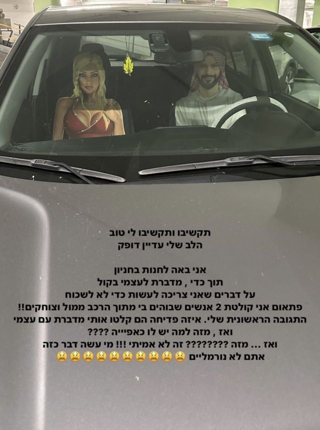 בוקר דרמטי במיוחד עבר על ספיר יודשקין יצחקי, אשתו של מאמן בית"ר ירושלים ברק יצחקי. ספיר שיתפה את 60 אלף העוקבים שלה באינסטגרם בחוויה לא נעימה שקרתה לה כשהגיעה לחניון בקניון הקרוב לביתה: "תקשיבו ותקשיבו לי טוב, הלב שלי עדיין דופק" כתבה החצי השני של יצחקי על גבי תמונה של גבר ואישה ישובים בתוך רכב והוסיפה: "הגעתי להחנות בחניון תוך כדי שאני מדברת לעצמי בקול על דברים שאני צריכה לעשות כדי לא לשכוח – ופתאום אני קולטת שני אנשים שבוהים בי מתוך הרכב ממול וצוחקים".