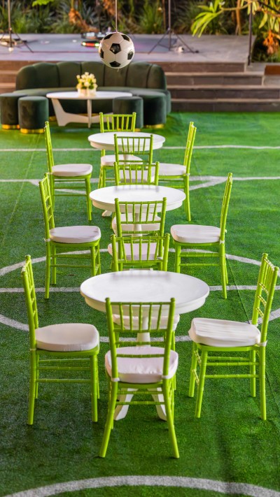 בחלק האחד הוקם בית הכנסת למעמד העלייה לתורה. בחלק השני נמצא מתחם הילדים – ולא סתם מתחם. דודו גבאי עיצב אותו כמו מגרש כדורגל ענק אמיתי, עד חשיבה בפרטים הכי קטנים. קירות בגוון ירוק דשא, שערים מיניאטוריים, ועיצוב שמחקה אצטדיון אמיתי – כי מה יותר מתאים לבנו של כוכב כדורגל? הילדים יכולים לשחק, להשתולל, ולהרגיש כאילו הם על המגרש. והחלק השלישי? זה אולם המסיבה, שם ההורים נהנים מהמוזיקה והאווירה.