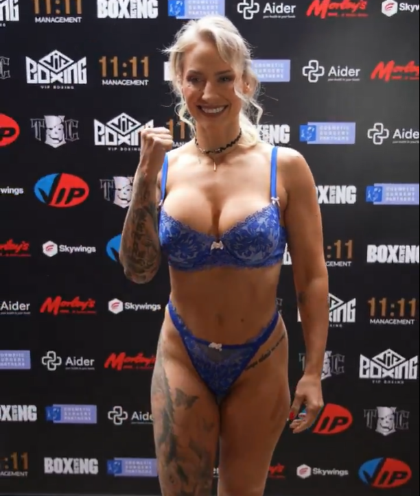 ברידג'ס, המכונה "הפצצה הבלונדינית", נודעת בשקילותיה הפרובוקטיביות, וכבר מזמן הפכה למלכה הבלתי רשמית של טקסי השקילה באגרוף. גם הפעם לא אכזבה והופיעה בסט הלבשה תחתונה בצבע כחול בהיר, שלא השאיר הרבה לדמיון.