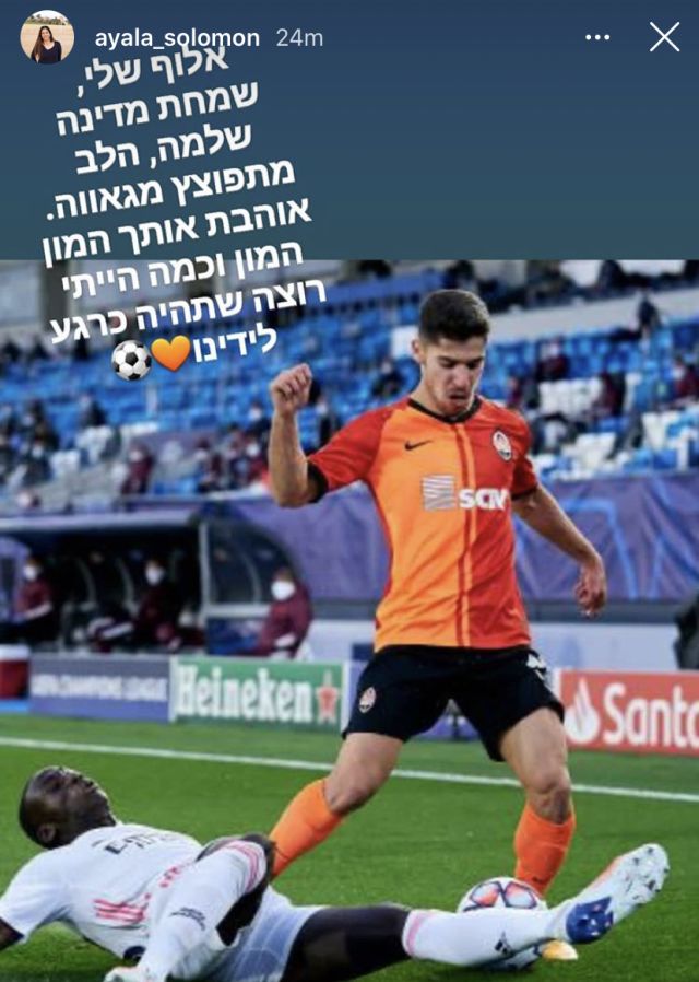 השער המטורף של מנור סולומון ב-2:3 של שחטאר דונייצק על ריאל מדריד ריגש מדינה שלמה. בזמן שהוא חרך את כר הדשא, בבית משפחת סולומון בכפר סבא, דנה וושינה בת הזוג צפתה בחבר שלה, לצד ההורים של מנור, יוסי ואיילה, ואחיו, מורן ומירית.