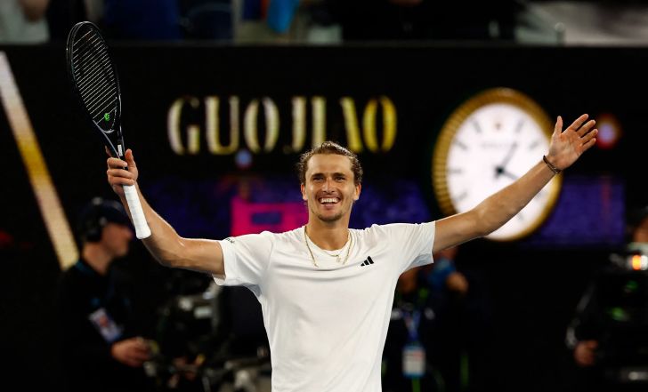 סשה זברב, באחד ממשחקיו המרשימים בקריירה, שלח הביתה את אלקראס תוך פחות משעתיים ומנע תסריט שבו ארבעת האחרונים באליפות יהיו המדורגים 1-4. הגרמני שבר את ההגשות של יריבו כבר במשחקון הראשון, ותוך פחות משעה ורבע של טניס מבריק הוא עלה ל-0:2 במערכות. הגרמני כבר עלה ל-2:5 במערכה השלישית, אולם אז הקיץ אלקראס ששבר בפעם הראשונה ולאחר מכן ניצח גם בשובר השוויון. במערכה הרביעית השיג זברב שבירה קריטית שהעלתה אותו ל-4:5, והוא שמר על ההגשות במשחקון האחרון בדרך לניצחון ראשון בקריירה בגרנד סלאם על שחקן מהטופ 5. אלקראס ייאלץ להמתין עוד שנה לפחות כדי להעפיל לראשונה לחצי הגמר במלבורן, וכעת המאזן בין השניים לאורך הקריירה עומד על 3:5 לטובת זברב.