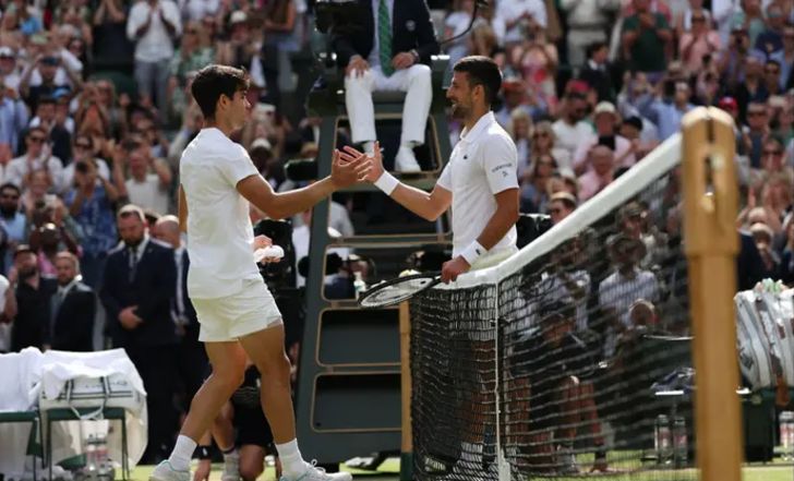 קרלוס אלקראס עשה זאת שוב. אשתקד נאלץ לעבוד קשה מאוד כדי להכניע את נובאק ג'וקוביץ' ולזכות לראשונה בקריירה בווימבלדון, אך הערב (ראשון) הוא עשה זאת מהר מהצפוי, עם 2:6, 2:6, 6:7 (4) מהדהד על שיאן הגרנד סלאמים בכל הזמנים, בדרך לזכייה שנייה ברציפות ולחגוג גרנד סלאם רביעי בקריירה – בסך הכל בגיל 21.