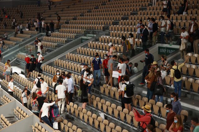 הדרמה לא נעצרה כאן: חמש דקות לפני כניסת הסגר, ג'וקוביץ' וברטיני ירדו מהמגרש ועצרו את ההתמודדות. "המשחק מופסק, אנחנו מחכים שתפנו את היציעים לחלוטין. המשחק יימשך בדלתיים סגורות בלבד", נאמר בכריזה. כעבור רבע שעה של כאוס, הסרבי והאיטלקי חזרו לחימר וערכו חימום קצרצר טרם שבו לשחק.