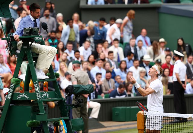 התוצאה הסופית בחצי הגמר השני בטורניר ווימבלדון לא הייתה הדבר היחיד שתסכל הערב (שישי) את דניס שפובלוב. במהלך המשחק שבו הפסיד לנובאק ג'וקוביץ', הקנדי זעם על השופט בעקבות פסיקה שלו בעזרת מערכת "עין הנץ" ופשוט איבד את העשתונות בעקבות ההחלטה.