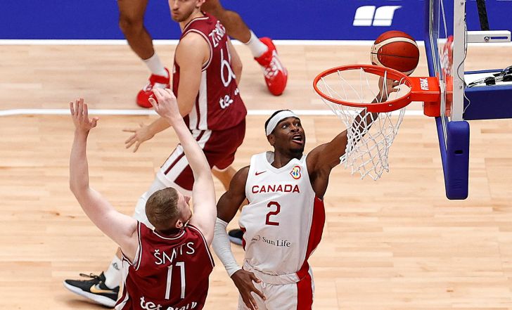 לטביה אמנם פתחה את המשחק טוב יותר וכבר הובילה ב-12 הפרש בדקות הפתיחה, אבל קנדה האימתנית לא נבהלה, חזרה לתמונה ועם מחצית שנייה של 33:58, נתנה נוק אאוט לעוד יריבה אירופית. שיי גילג'ס אלכסנדר שוב היה מעל כולם עם 27 נקודות, 6 ריבאונדים ו-6 אסיסטים ואר ג'יי בארט קלע 22. אנדרייס גראז'וליס קלע 16 בלטביה ורודיונס קורוץ' בלט עם 14 נקודות ו-10 ריבאונדים.