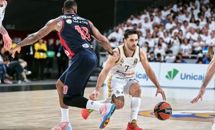 המחצית הראשונה הלכה צמוד: פקונדו קמפאסו (24 נק' ו-7 ריב') להט בשורות אלופת אירופה, אלא שוואניה מרינקוביץ' (20 נק') ומרקוס הווארד (12 נק') השאירו את הבאסקים קרובים ובתום 20 הדקות הראשונות הוליכה ריאל 40:46. ברבע השלישי קבע קמפאסו יתרון שיא עד אותו רגע של 47:56, סרחיו יוי (13 נק') הצטרף בדרך ל-63:79 בתחילת הרבע האחרון, ומשם באסקוניה כבר לא חזרה.