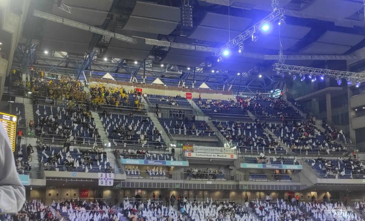 כך למשל, למשחק בין ריאל מדריד למכבי תל אביב הטריחו את עצמם רק 7,634 צופים. זאת למרות שמדובר באולם שמכיל 17,453 מקומות, כך שאפילו מחציתו לא התמלאה. יש לציין שבמדריד ידעו עוד לפני המשחק שהאולם לא יהיה קרוב להתמלא וחששו מרכישת כרטיסים מאסיבית של אוהדי מכבי תל אביב בדומה למה שעשו אוהדי איינטרכט פרנקפורט לברצלונה בליגה האירופית. זה לא קרה כשבפועל הגיעו כמה מאות בודדות בצהוב. אפשר לתרץ את האולם הדליל אולי בעובדה שבמקביל התקיים משחק של ריאל מדריד בכדורגל, אבל ספק עם כמות הקהל תגדל משמעותית במשחק מספר 2 בשישי.