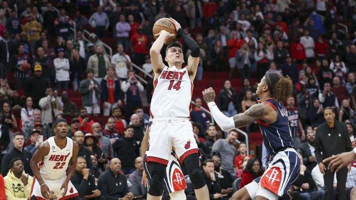 מיאמי חסרה מספר שחקני מפתח בטקסס כמו באם אדבאיו וקייל לאורי, אבל טיילר הירו נתן את משחק חייו עם שיא קריירה של 41 נקודות ושיא מועדון של 10 שלשות מתוך 15 ניסיונות והוליך את ההיט במו ידיו לניצחון קשה. אחרי שקלע 9 שלשות מול אוקלהומה סיטי, הירו הפך לשחקן ההיט הרביעי בלבד שקולע 10 שלשות והראשון אי פעם שקולע 19 שלשות בשני משחקים רצופים עבור ההיט. ג'ימי באטלר הוסיף 20 נקודות ו-10 ריבאונדים למיאמי, שסגרה את המינוס. קווין פורטר ג'וניור עוד ניסה לכפות הארכה, אבל החטיא שלשה ארבע שניות לסיום. פורטר קלע 21 נקודות לרוקטס המשתפרים, ג'יילן גרין הוביל עם 22.