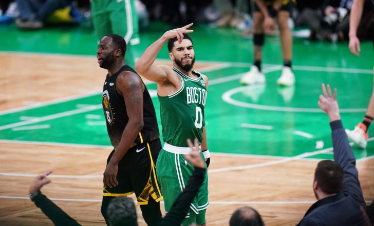 אחרי ארבעה ניצחונות רצופים במפגשים בין הקבוצות, שלושת הראשונים בסדרת הגמר אשתקד ואחד נוסף בעונה הנוכחית, גולדן סטייט הובילה ב-11 הפרש ב-TD גארדן של סגנית האלופה בתוך הרבע השלישי, אבל שלשה של ג'יילן בראון 19 שניות לסיום הרבע האחרון כפתה הארכה, שבה צליפות של אל הורפורד וג'ייסון טייטום סידרו לבוסטון הלוהטת את הניצחון השמיני ברציפות שלה. טייטום קלע 34 לצד שיא קריירה של 19 ריבאונדים, הורפורד הוסיף 20 ו-10 בהתאמה, מרכוס סמארט קלע 18 ובראון סיים עם 16 נקודות. סטף קרי הוביל את המפסידה עם 29 ו-7 אסיסטים, קליי תומפסון וג'ורדן פול רשמו 24 כל אחד.