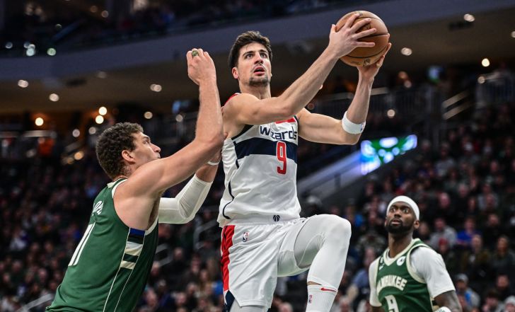 שחקן וושינגטון וויזארדס דני אבדיה מול שחקן פילדלפיה 76' ג'ואל אמביד